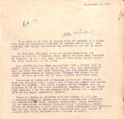 EWP 3-1 Yr 1929 Public Schools of Loudoun County
