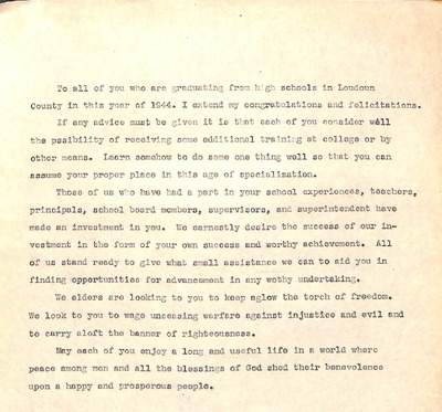 EWP 3-1 Yr 1944 Graduation Message to HS