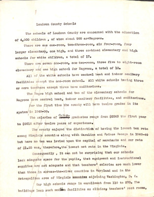EWP 3-1 3-1 Yr 1949 Status of Loudoun County Schools
