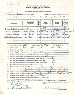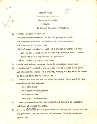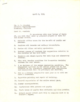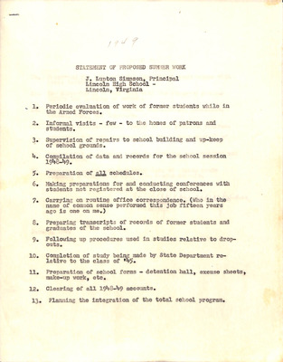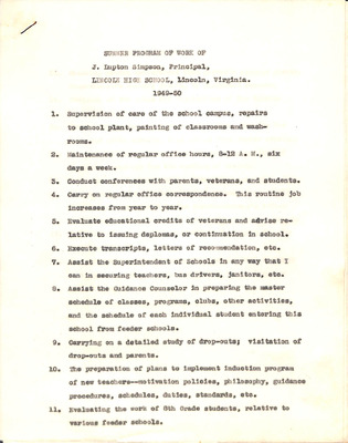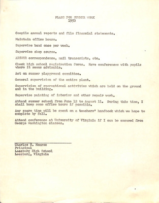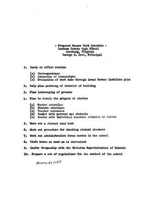 EWP 3-3 3-3-3 Yr 1950 Summer Work Plans Leesburg HS