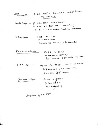 EWP 3-3 3-3-3 Yr 1955 Summer Program for Leesburg Elementary School