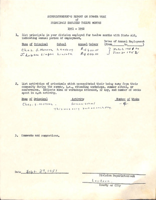 EWP 3-3 3-3-3 Yr 1951 Rpt of Summer Work by Principals