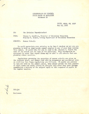 EWP 3-3 3-3-3 Yr 1951 Summer School Req by State Board of Educ