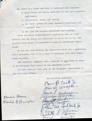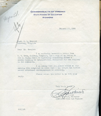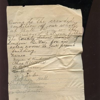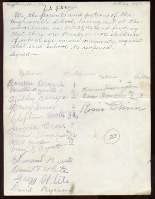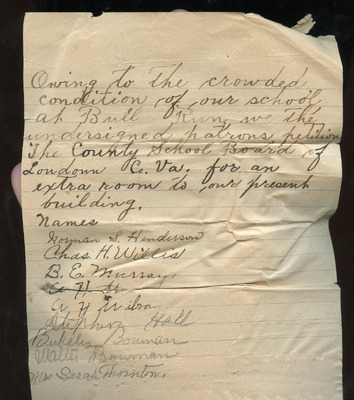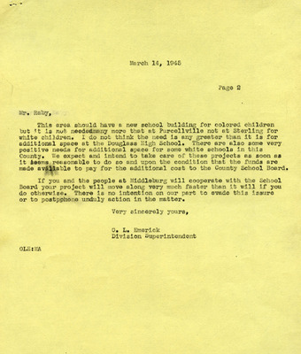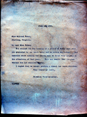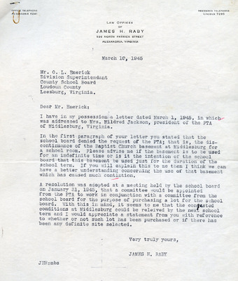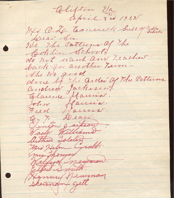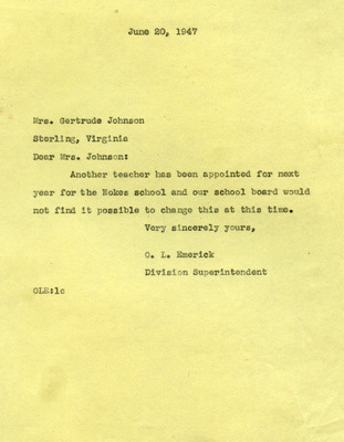 This document includes a letter of petition dated June 18, 1947, from Mrs. Gertrude Johnson, President of the Parents Teachers League, with petitioners' signatures, and a typewritten response from O.L. Emerick, Division Superintendent. In his June 20, 1947, response, Emerick states that the school board would not find it possible to honor this request, as another teacher has already been assigned.