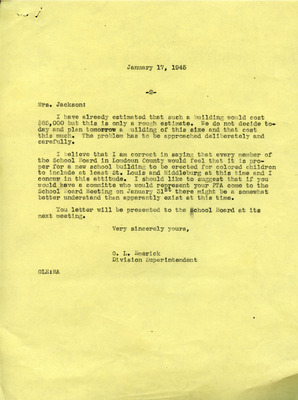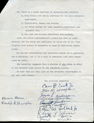 This letter dated May 10, 1932, from the Community League, patrons of the Colored Public School, and taxpayers in Loudoun County, Virginia, to the Board of Education, highlights a call for change in the graded departments of the school. The appeal for improvements in efficiency and other unspecified concerns reflects a desire for a better educational experience for the children attending the school. After thirty years without change, the community league and patrons are advocating for a justifiable plea to appoint teachers that will address their concerns and enhance the learning environment for their children.