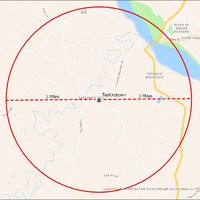 It's estimated that the maximum distance students would have walked to this school is 3 miles one way. The graphic shows the area from which students may have walked to this school.