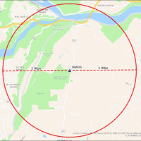 It's estimated that the maximum distance students would have walked to this school is 3 miles one way. The graphic shows the area from which students may have walked to this school.