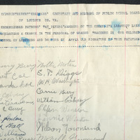 petition, Community League, Leesburg, teachers, colored school, signatories, Henry Berry, Millie Surton, Bertha Cravens, education