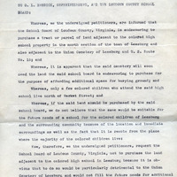 Petitioners, Loudoun County, Virginia, tension, colored community, School Board, land purchase, Union Cemetery, educational needs, Leesburg, challenges