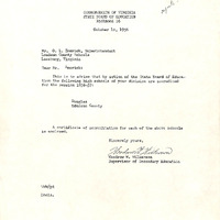 October, 1956, State Board of Education, Virginia, letter, Loudoun County Schools, Superintendent, O. L. Emerick, accredited, high schools, Douglas, Loudoun County High Schools, educational standards, Board, quality education, state regulations